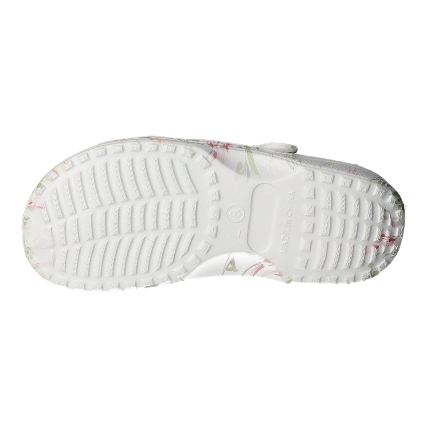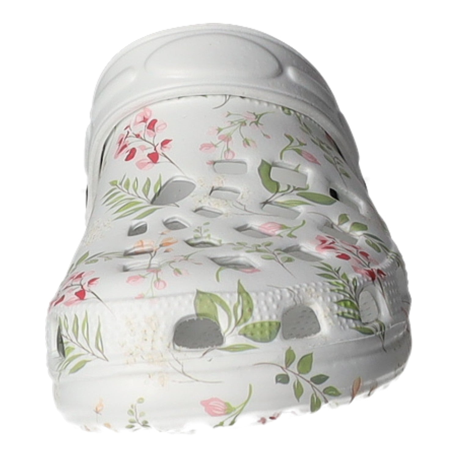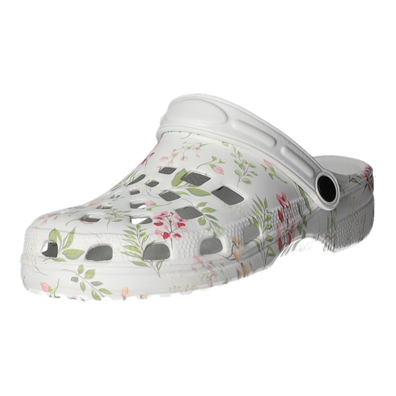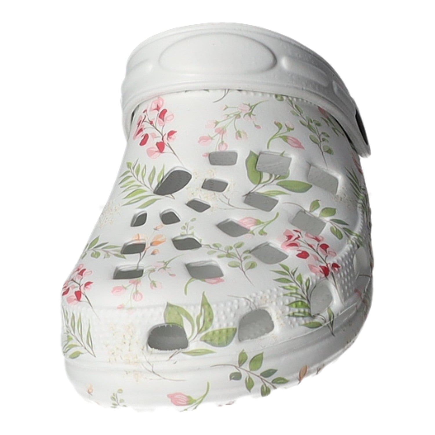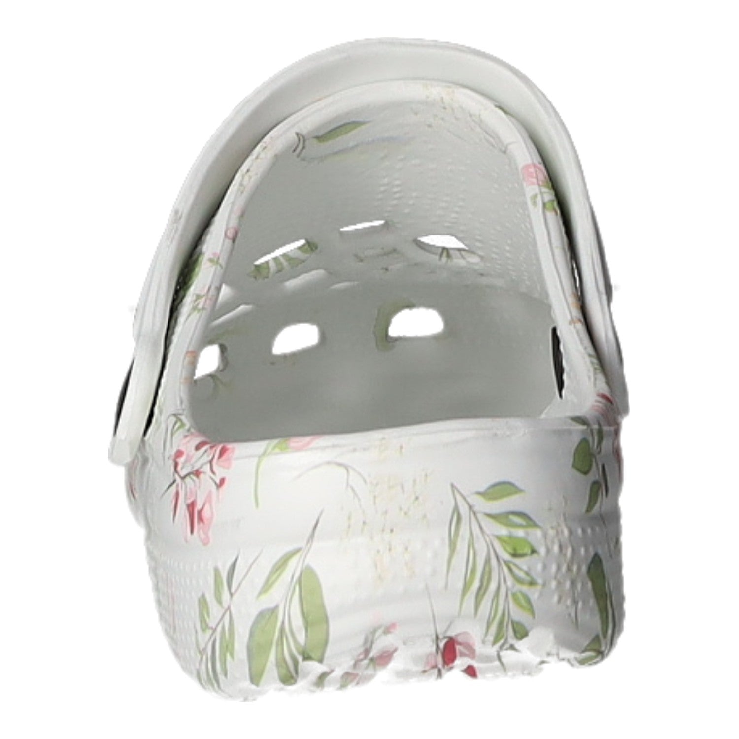 Gefertigt aus weißem Synthetik mit bunten Blumenmotiven.