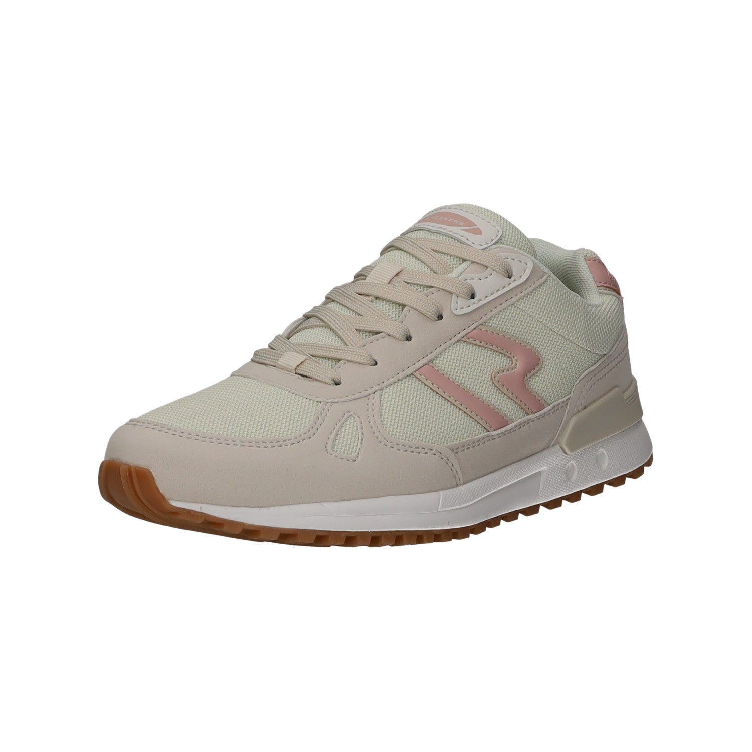 Die Schnürung erlaubt die optimale Einstellung des Schuhs. Gefertigt aus wunderschönem, im Grundton beigem textilem Obermaterial und Kunstleder.