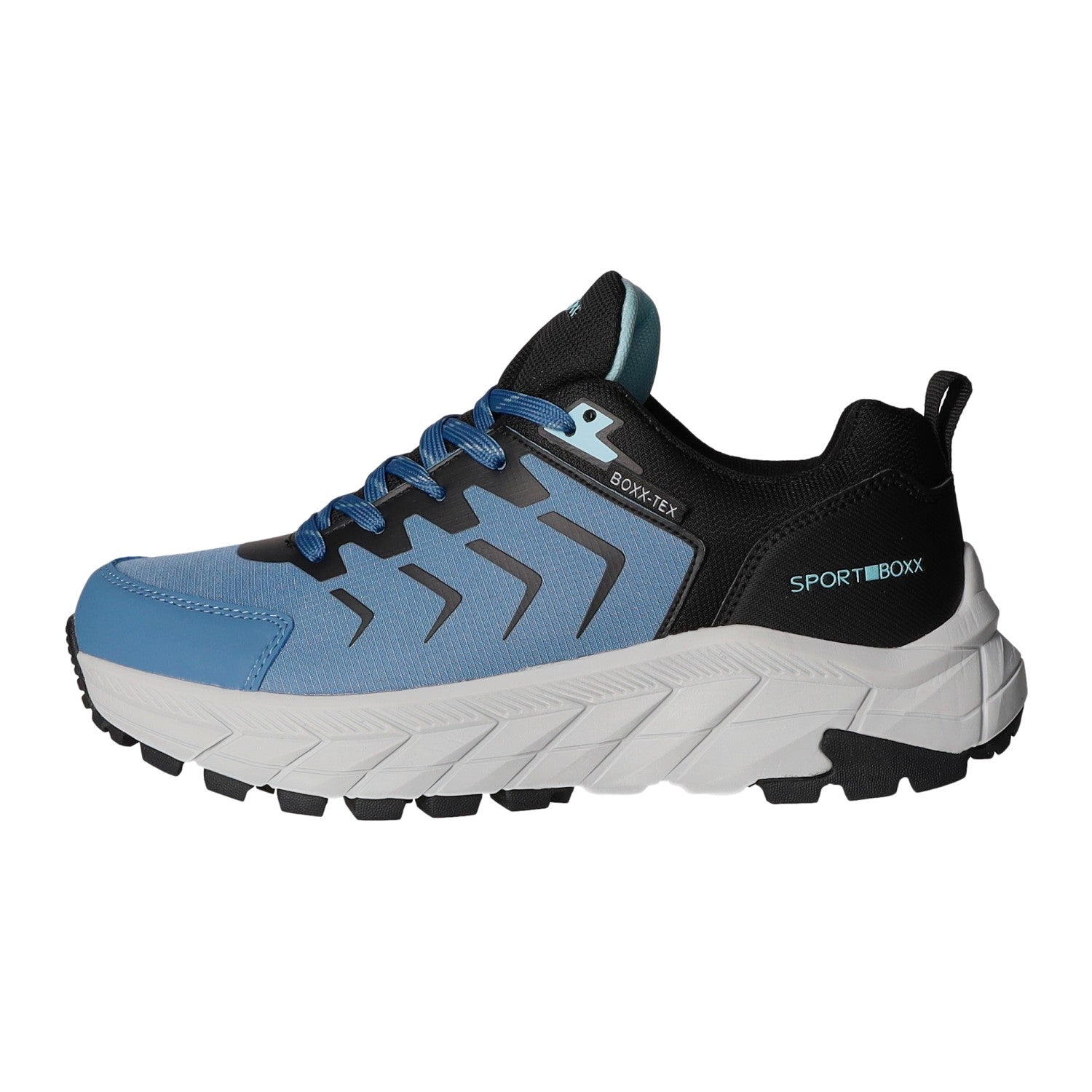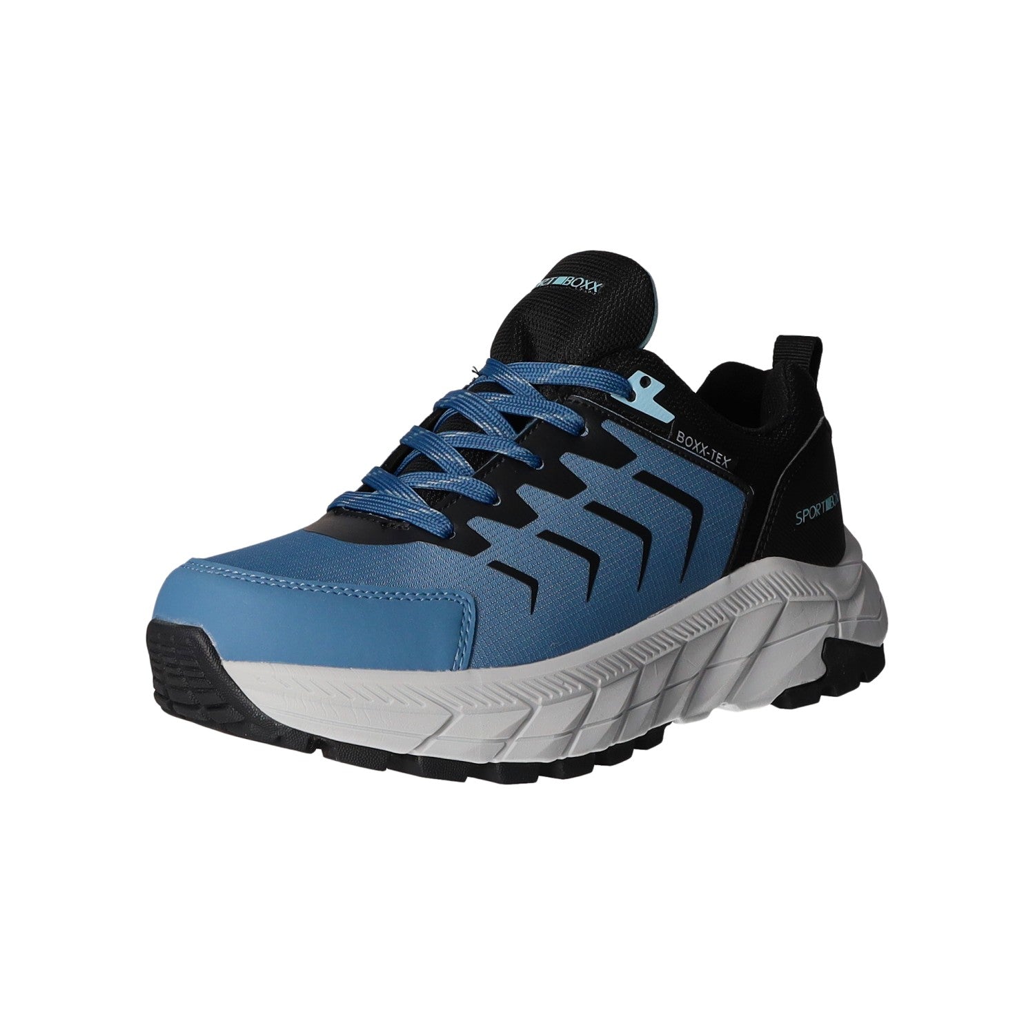 Die Laufsohle besteht aus Synthetik. Durch die BOXX-TEX-Funktionsmembran ist der Schuh wasserdicht und atmungsaktiv. Gefertigt aus schwarzem Textil und Kunstleder.