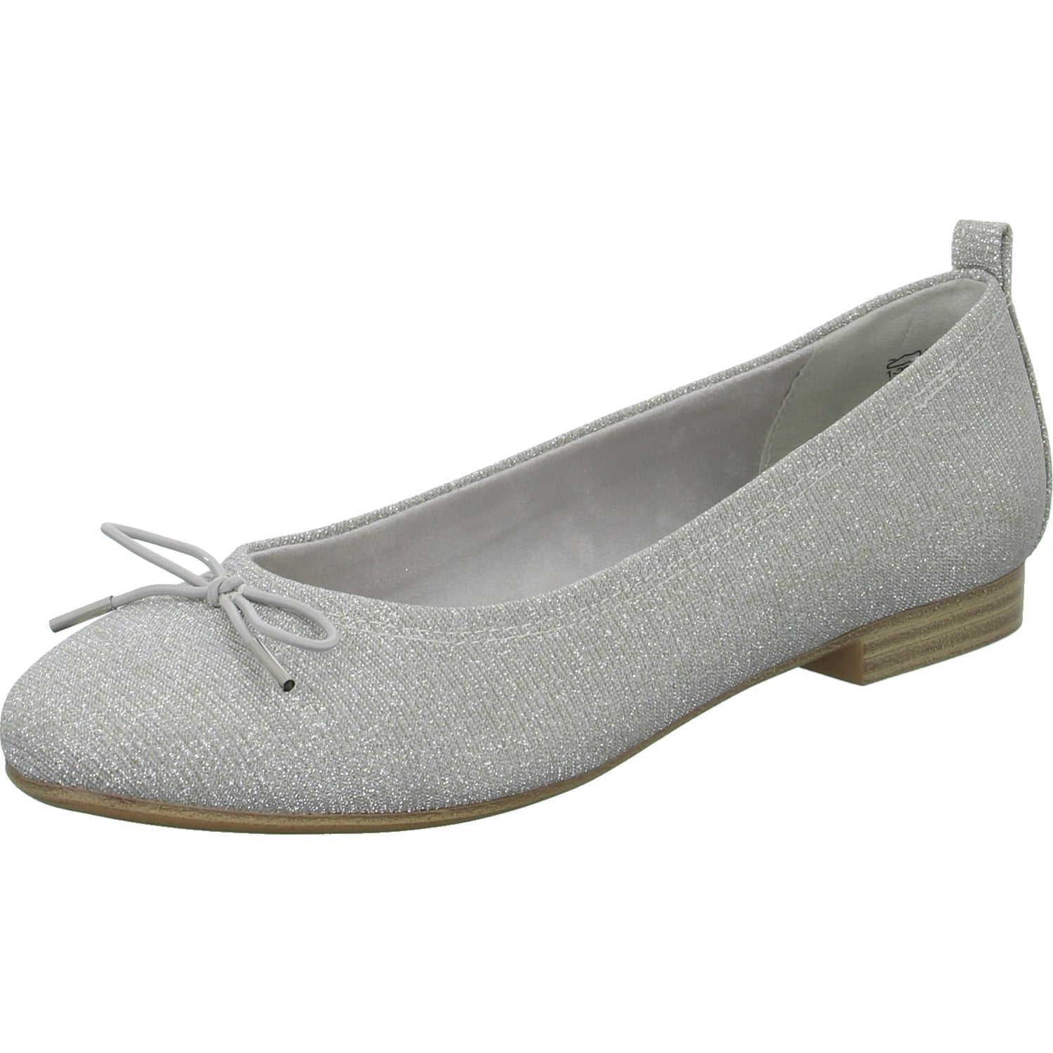 Das Obermaterial aus silbernem textilem Obermaterial mit Glitzereffekt ist ein absoluter Blickfang.