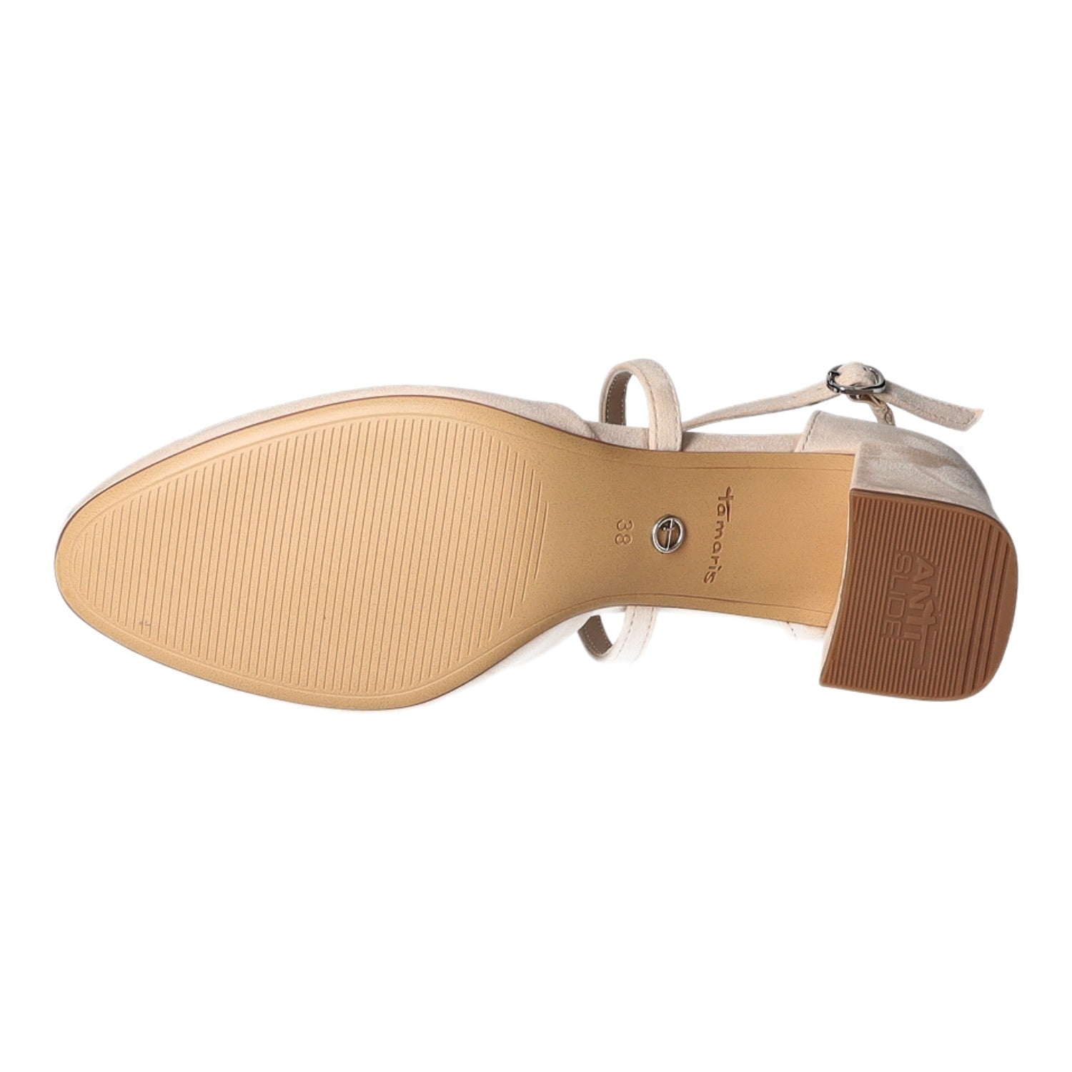 Tamaris Anti Slide Technologie ermöglicht durch einen rutschfesten, profilierten Absatzfleck sicheren Halt und bessere Bodenhaftung.
