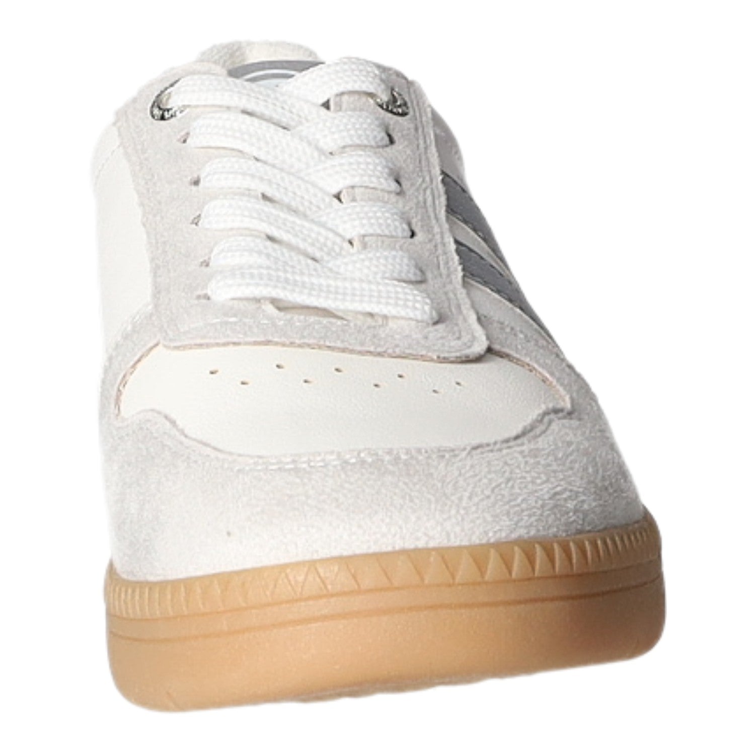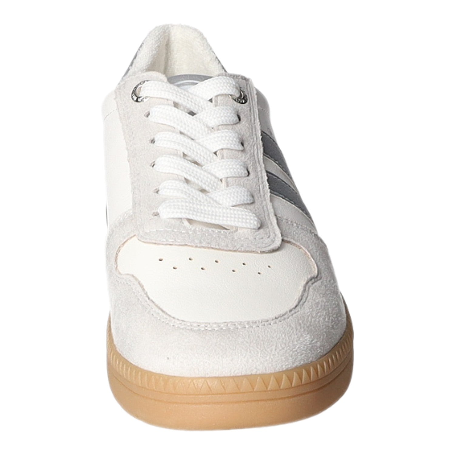 Mit der Schnürung ist die Anpassung kinderleicht.Das weiß/graue Kunstleder-Obermaterial ist leicht und angenehm zu tragen.