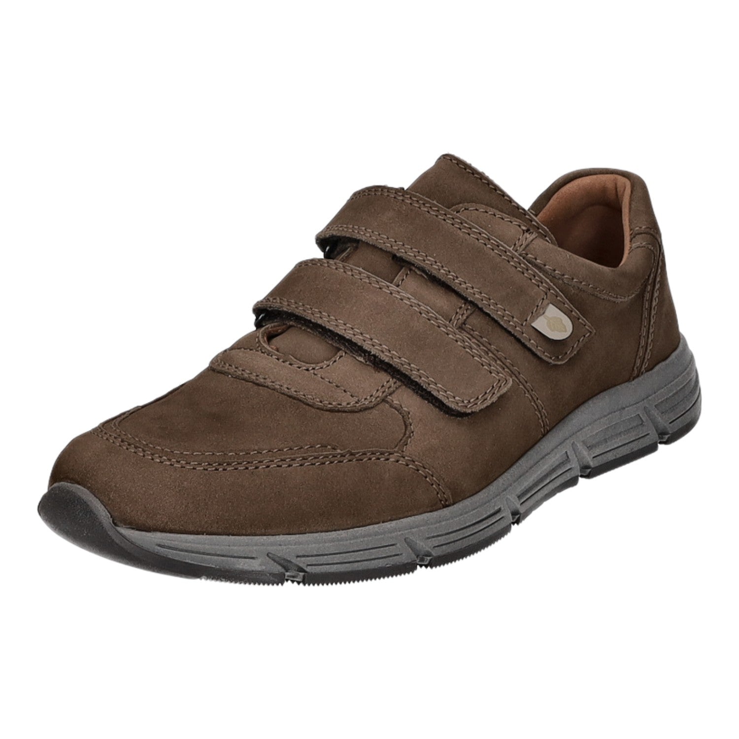 Gefertigt aus hochwertigem braunem Veloursleder.